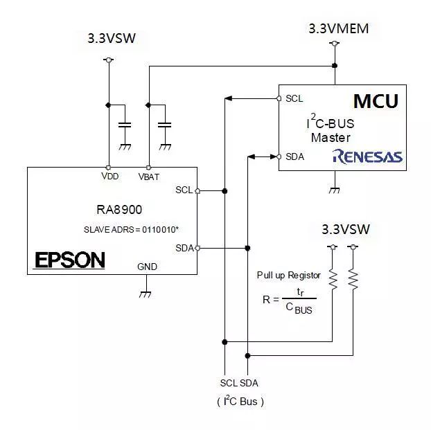 而且,RA8900CE支持高達400Khz的IIC通信,接口電壓支持2.5V~5.5V。最主要RA8900CE的封裝僅為2.5mm*3.2mm,小封裝有利于PCB走線,方便我們把RA8900CE放置在MCU附近,大大降低了PCB布線難度。因此,其既滿足晶振要求又降低了PCB布線難度,可謂是一舉兩得。